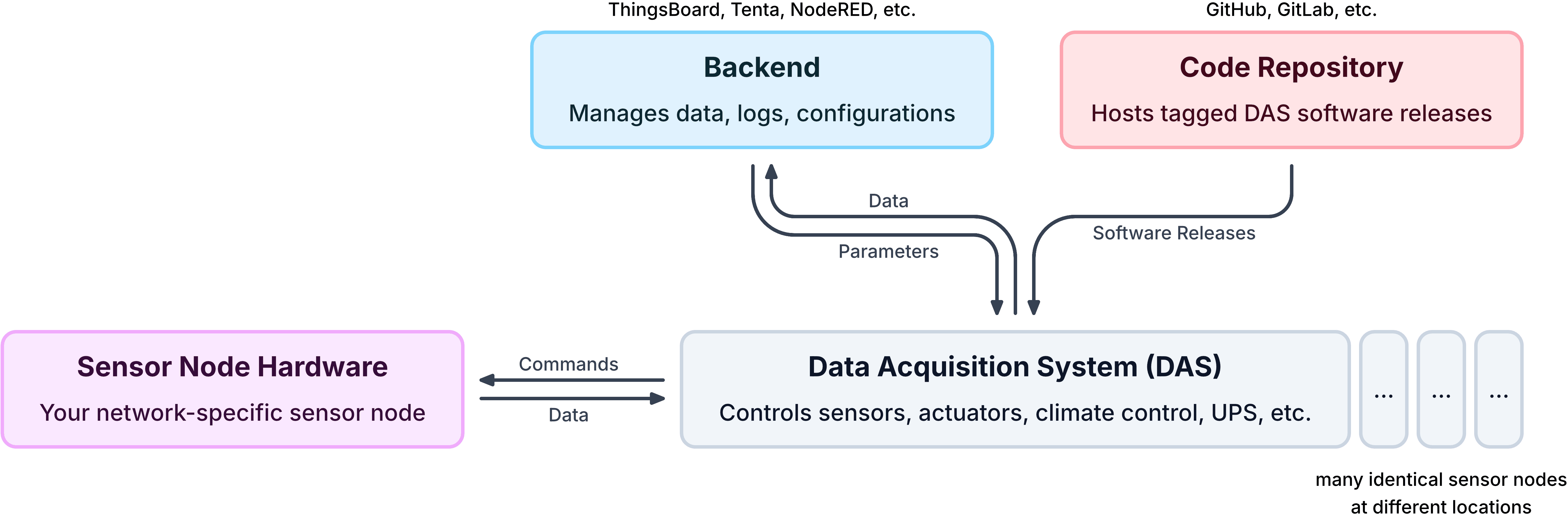 In our context, an IoT backend is a server that receives data from sensor nodes and stores it in a central database. It also sends parameter updates to the sensor nodes. This bidirectional communication can be implemented via MQTT, AMQP, Web Sockets, or any other publish-subscribe messaging protocols.